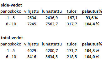 Vihjeiden tilausta ei suositella alle 8000 euron pelikassalla.